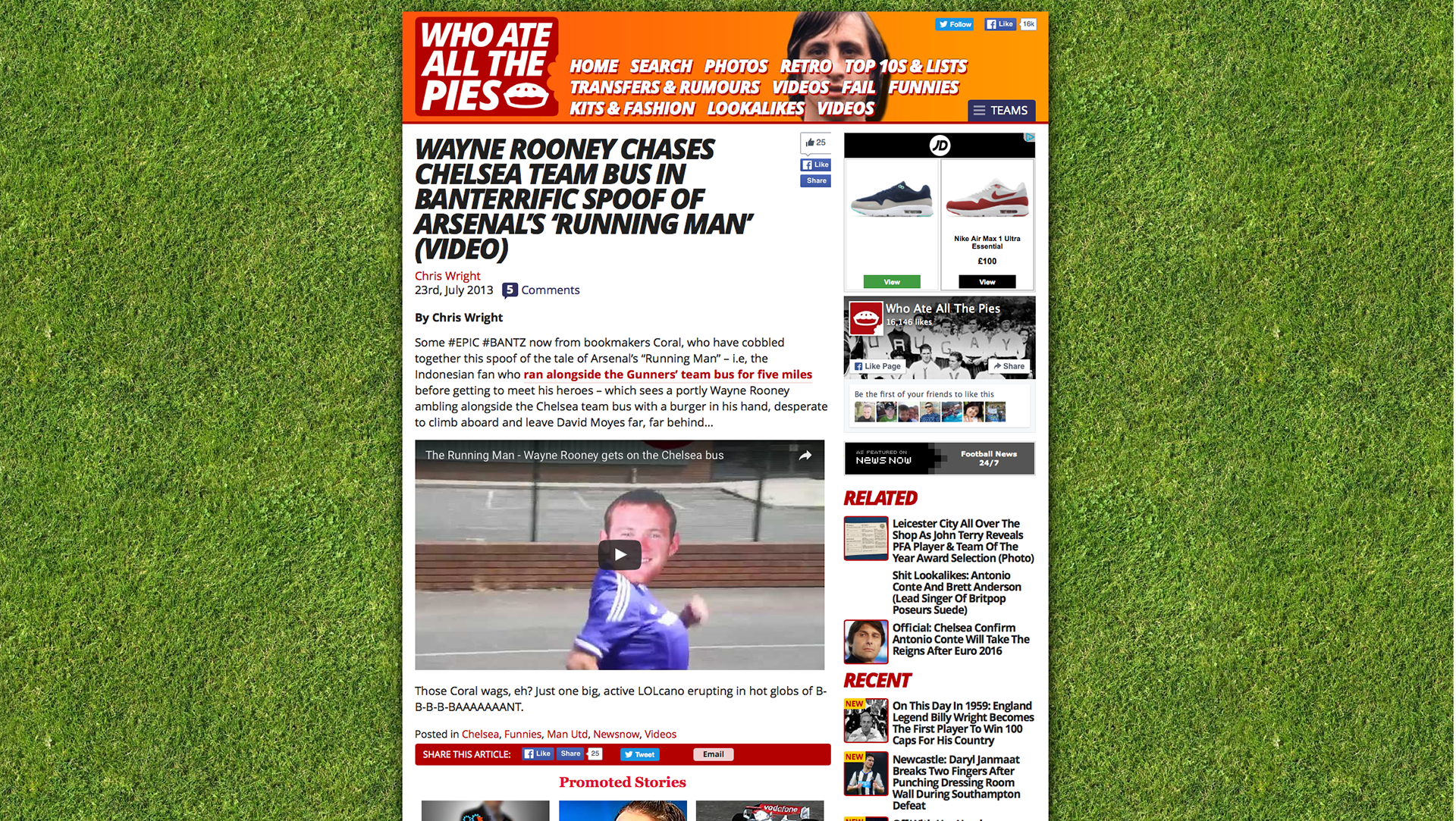 24 hours after Arsenal send out their 'Running man' viral I made a parody featuring Wayne Rooney who was being chased by Chelsea.